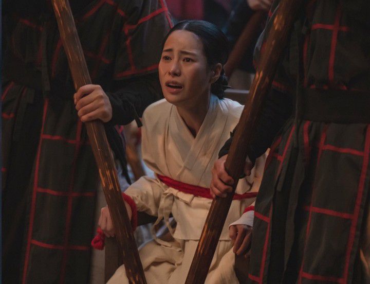 공개된 사진 속 옥태영은 군졸들에게 포박당한 채 끌려가고, 주리를 틀리기 직전의 상황까지 이어지며 극적 긴장감을 높인다. 특히 고단한 얼굴과 간절함이 담긴 눈빛은 그녀의 처지가 얼마나 절박한지 보여준다.