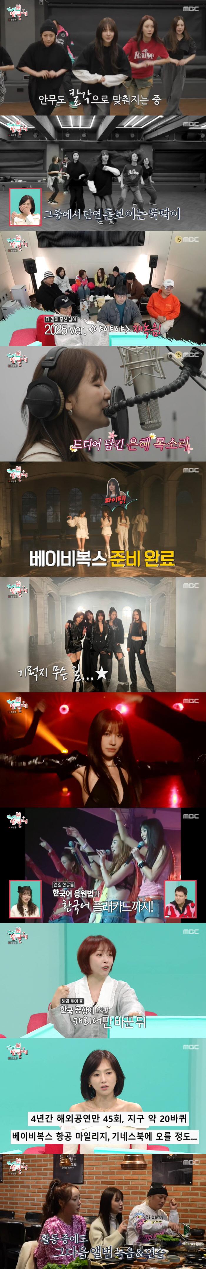 또한 비행기 마일리지로 기네스북에 올랐다는 베이비복스. 심은진은 "맞다. 한국 공항에서 캐리어만 바꾼 뒤 바로 다른 나라 투어로 갔다"고 했고, 이희진은 "지구 20바퀴를 돌았다고 하더라"고 해 놀라움을 자아냈다.