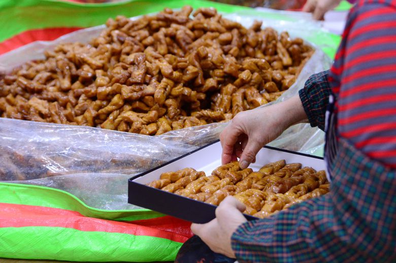 한 전통 약과 제조업체에서 직원들이 명절 선물로 나갈 수제 약과 세트를 포장하고 있다. /뉴스1
