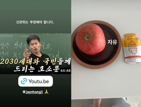 쓰복만은 지난 25일 자신의 계정에 "선관위는 투명해야 합니다"라는 글과 함께 전한길이 '2030세대와 국민들께 드리는 호소문'이라는 제목의 영상을 공유했다. 더불어 전한길 강사의 계정을 태그했다.
