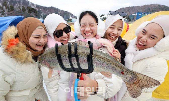 [이데일리 방인권 기자] 26일 오후 설연휴를 맞아 강원 평창군 진부면 오대천 일원에서 열린 평창송어축제를 찾은 말레이시아 방문객들이 송어얼음낚시를 즐기고 있다.