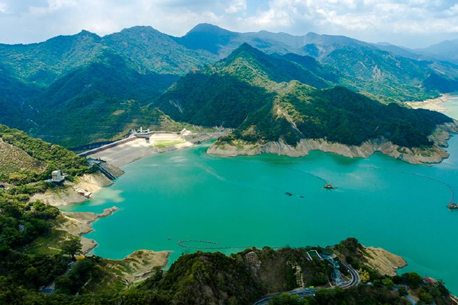 하늘에서 내려다본 대만 남부의 쩡원댐. 인근의 강진 발생으로 위험할 수도 있을 것으로 보인다./대만 롄허바오(聯合報).