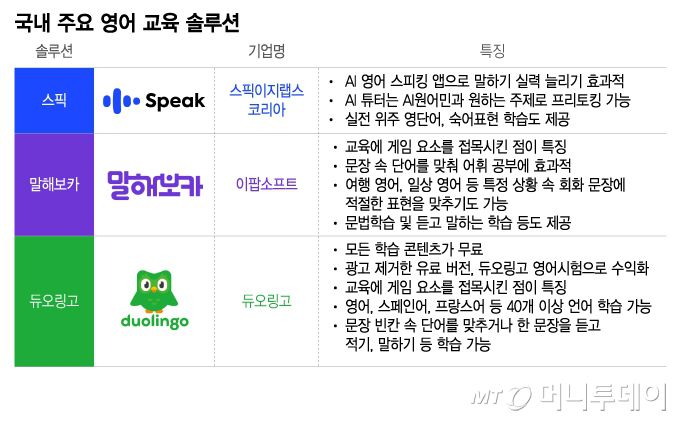 국내 주요 영어 교육 솔루션/그래픽=이지혜