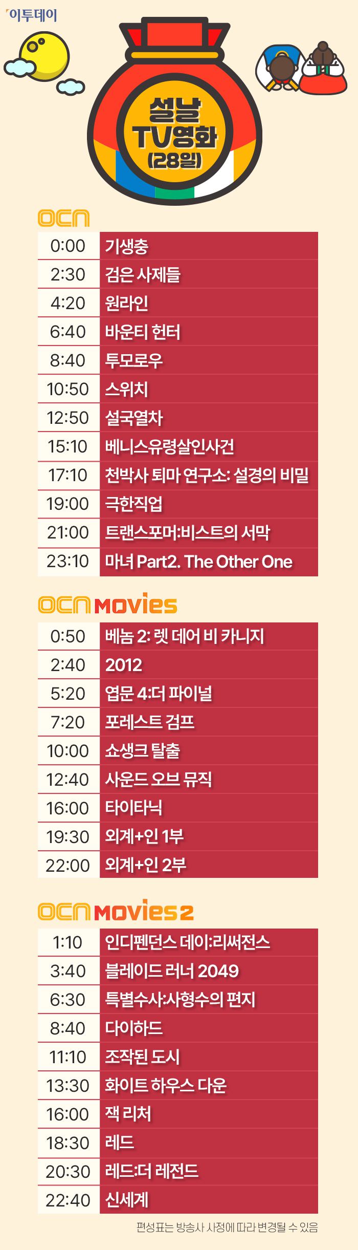 2025 설날 연휴인 28일 OCN·OCN Movies·OCN Movies2에서 방송되는 특선영화들.