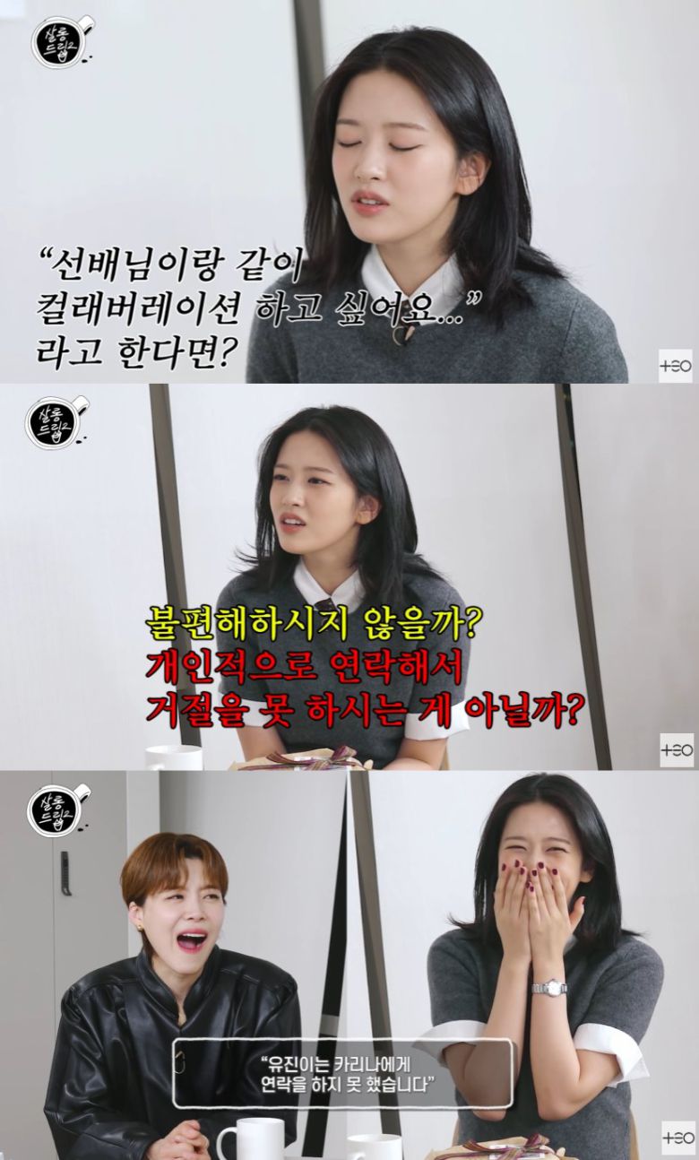그러나 방송국 측에서 "'카리나 쪽에서도 네 얘기를 하는 거 같다'고 알려줬고, 이를 듣고 연락을 해봐야지 했는데 선배님이 먼저 연락을 주셨다"고 말하며 좋아했다.
