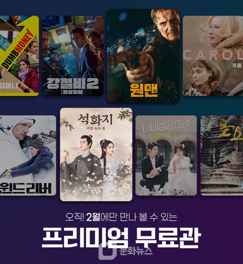 이번 '2월 프리미엄 무료관'에서는 남녀노소 모두가 즐길 수 있는 다양한 장르의 인기 영화 7편과 해외 시리즈 3편을 엄선해 선보인다.