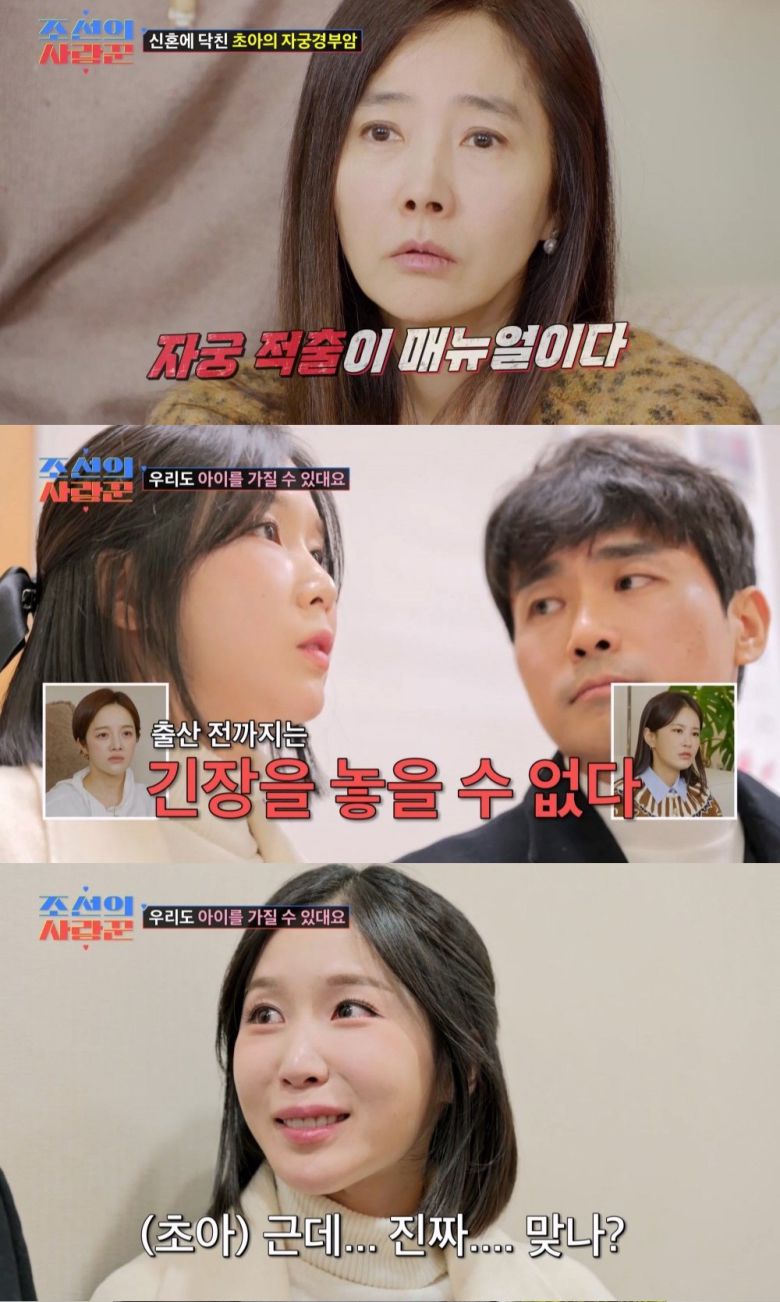 그럼에도 의료진은 '임신 허락'을 해 주었고, "임신 6~7개월까지만 버텨주면 성공적이라고 생각할 수 있다"고 희망적인 설명을 덧붙였다. 임신을 향해 한 발짝 걸어나간 초아는 행복감에 눈물을 흘려 진한 감동을 자아냈다.