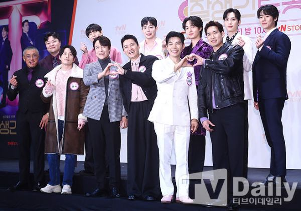tvN STORY '잘생긴 트롯' 제작발표회가 4일 서울시 구로구 라마다서울 신도림 호텔에서 열렸다. 이날 현장에는 황다원 PD와 MC 장민호, 이찬원을 비롯해 출연진 12인(추성훈, 장혁, 최대철, 인교진, 지승현, 정겨운, 태항호, 현우, 김동호, 이태리, 김준호, 한정완)이 모두 참석했다.