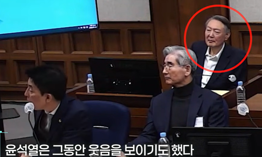 6시간50분가량 이어진 재판 동안 윤 대통령의 표정 변화가 있었던 건 두번 뿐이었다 두번 모두 홍 전 차장이 계엄과 관련한 윤 대통령의 위법한 지시를 폭로했다가 경질을 당하는 등 불이익을 받았다는 취지의 말을 했을 때다. 불편한 심기를 미소로 대신했던 것으로 보인다.