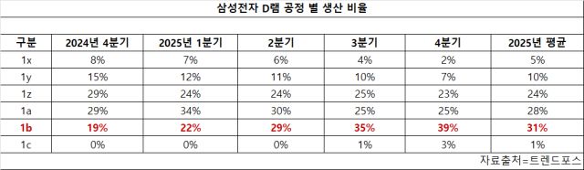 지난해까지 생산 비중이 가장 높았던 레거시 제품인 10나노급 3세대(1z) 제품은 최대 지분을 잃습니다. 작년까지 15% 정도를 차지했던 2세대(1y) 제품도 한 자릿수대로 떨어질 것으로 관측됩니다.
