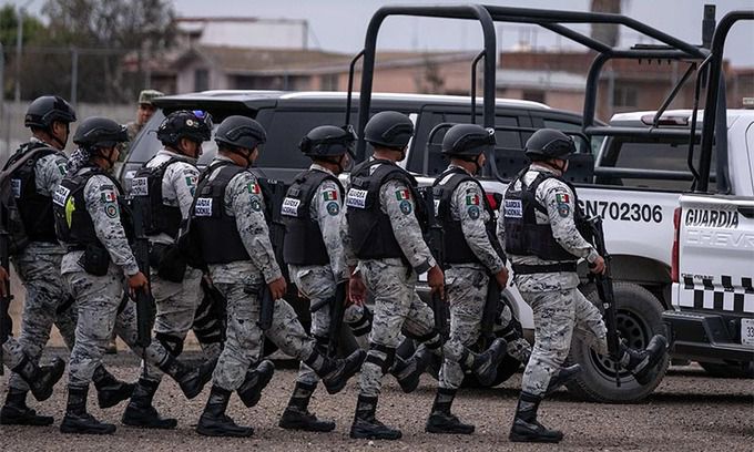 4일(현지시간) 멕시코 국가방위대원들이 멕시코 바하 캘리포니아 주 티후아나에 있는 티후아나 국제공항에 도착하고 있다. AFP연합뉴스 |