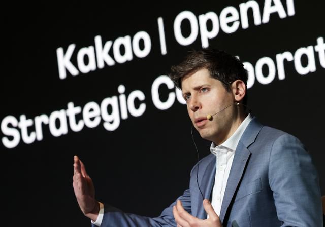챗GPT 개발사 오픈AI의 샘 올트먼 최고경영자(CEO)가 지난 4일 서울 중구 플라자호텔에서 열린 카카오와의 공동 기자간담회에 참석해 발언하고 있다. 뉴스1 |