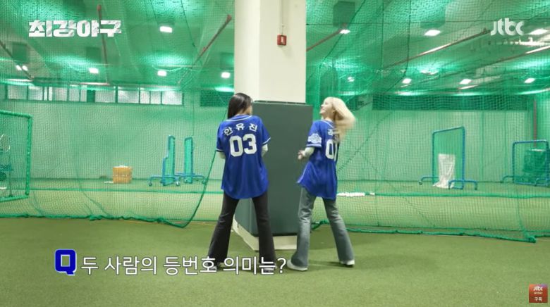 JTBC '최강야구' 측은 5일 유튜브 채널을 통해 '코칭하러 왔다가 다이브가 돼. 영건즈도 아재들도 신난 아이브 안유진X리즈 시구·시타 연습. '최강야구' 비하인드"라는 제목의 영상을 게재했다.