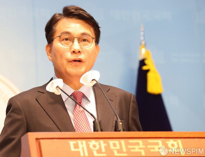 [서울=뉴스핌] 이호형 기자 = 윤상현 국민의 힘 의원이 31일 오후 서울 여의도 국회 소통관에서 열린 현안 기자회견서 마은혁 헌재 재판판 후보자 사퇴를 주장하고 있다. 2025.01.31 leemario@newspim.com