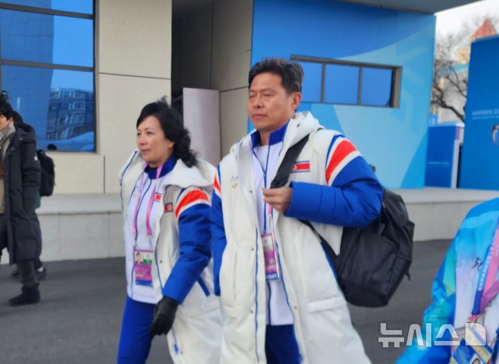 [하얼빈=뉴시스]김희준 기자 = 2025 하얼빈 동계아시안게임에 출전하는 북한 선수단이 모습을 드러냈다.