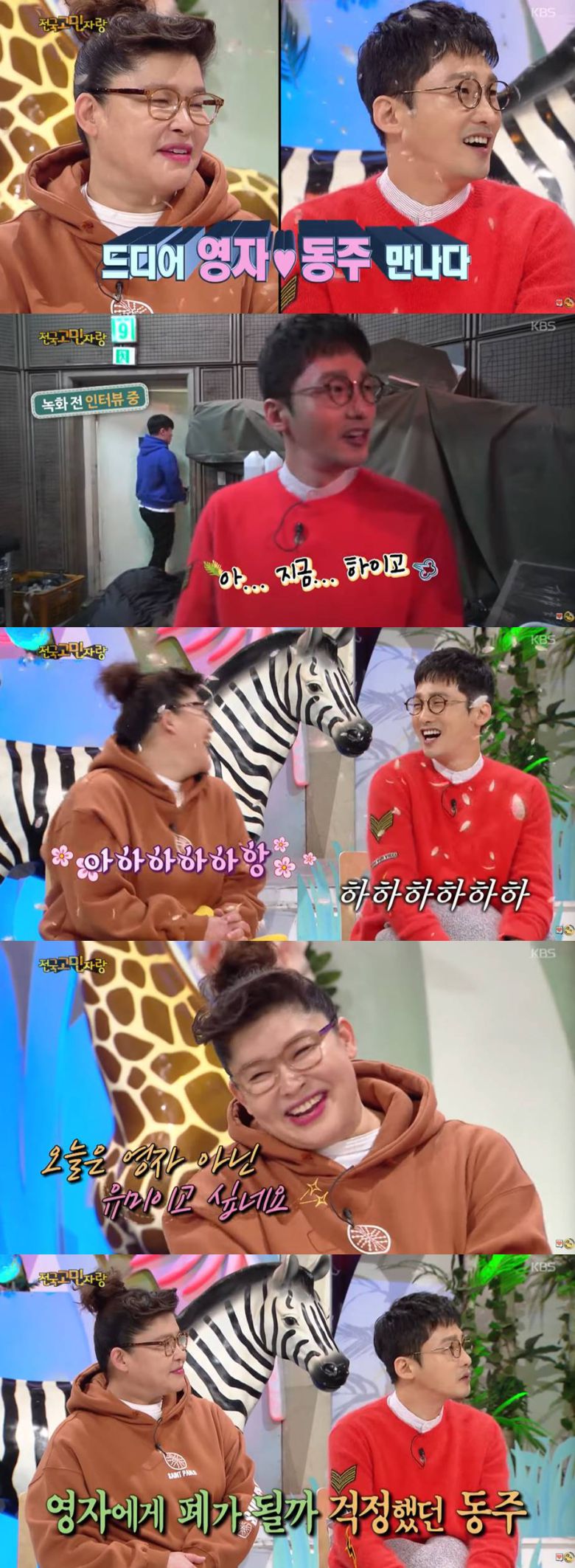 해당 일화는 20년 전이라고. 이영자는 당시를 기억하지 못했다. 어떤 매력에 좋아하게 됐냐고 묻자 황동주는 "그냥 좋은 것 같다"고 답했다. 외모 중 어디가 좋냐는 물음에는 수줍게 "웃으실 때"라고 이야기했다.