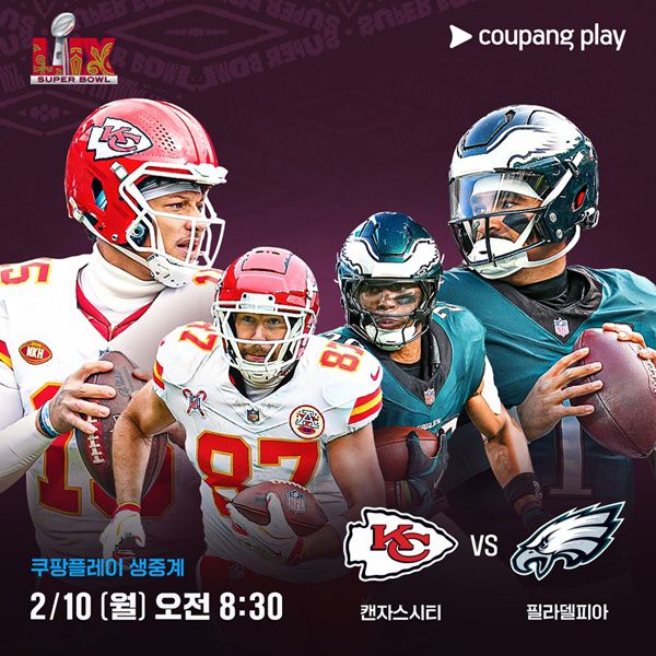 쿠팡플레이, '캔자스시티 vs 필라델피아' 슈퍼볼 생중계