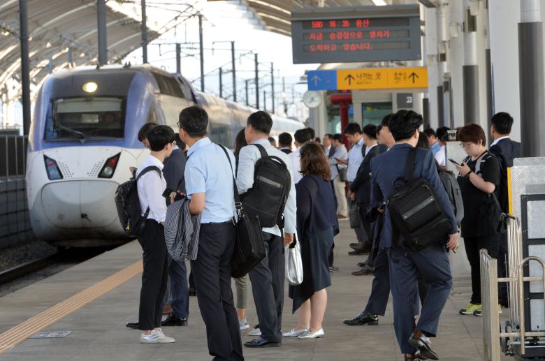 충북 청주 KTX오송역 승강장에서 탑승 대기하고 있는 사람들. 2018.9.17/ 신현종 기자