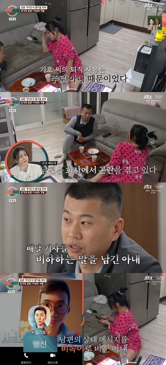 하지만 아내의 예민함은 남편에게만 향하지 않았다. 남편은 "네가 하도 회사에 깽판 쳐서 이직한 거 아니냐. 월급 빨리 달라고 회사에 전화하고 카풀한다고 뭐라 하고"라며 말했다.
