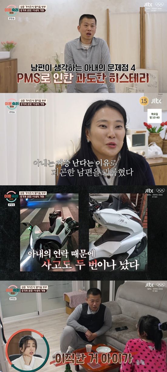 이날 남편은 아내의 문제점 중 하나로 생리전증후군(PMS)으로 인한 과도한 히스테리를 꼽았다.