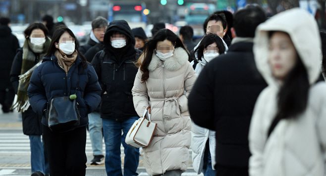 한파 특보가 내린 지난 1월 9일 오전 서울 종로구 광화문네거리에서 두꺼운 옷차림을 한 시민들이 횡단보도를 건너고 있다. /박성일 기자