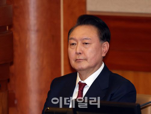 [사진공동취재단] 윤석열 대통령이 23일 오후 서울 종로구 헌법재판소 대심판정에서 열린 탄핵심판 4차 변론기일에 출석해 있다. 2025.01.23.