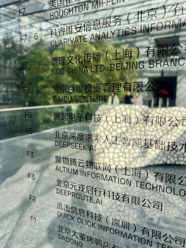 첨단산업의 전진기지로 떠오른 항저우에 본사를 둔 딥시크는 중국판 실리콘밸리로 불리는 중관춘에도 연구개발(R&D) 인력이 상주하고 있다. 인력만 보면 본사보다 베이징에 더 많은 연구원이 배치돼 있다고 전해지지만 건물 밖에서는 딥시크의 존재조차 파악하기 힘들다. 이날 만난 보안요원에게 “이 건물에 딥시크 사무실이 있느냐”고 묻자 “그렇다”며 손가락으로 입주 회사 명단이 표시된 층별 안내도를 가리켰다. 중국어와 영어로 5층에 딥시크 사무실이 있다는 점을 확인할 수 있었지만 보안 검색대조차 통과할 수 없었다. 안내 데스크에 출입 가능 여부를 물었지만 미리 약속하지 않은 경우 불가능하다는 답변만 돌아왔다.