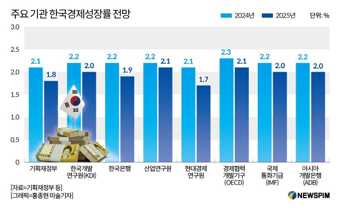 올해에는 견조한 수출과 민간 소비·투자의 완만한 회복에 따라 2.0%의 경제 성장률을 기록할 것으로 예상했다. 이는 지난달 세계경제전망(WEO)에서 내놓은 전망 수치와 동일하다.