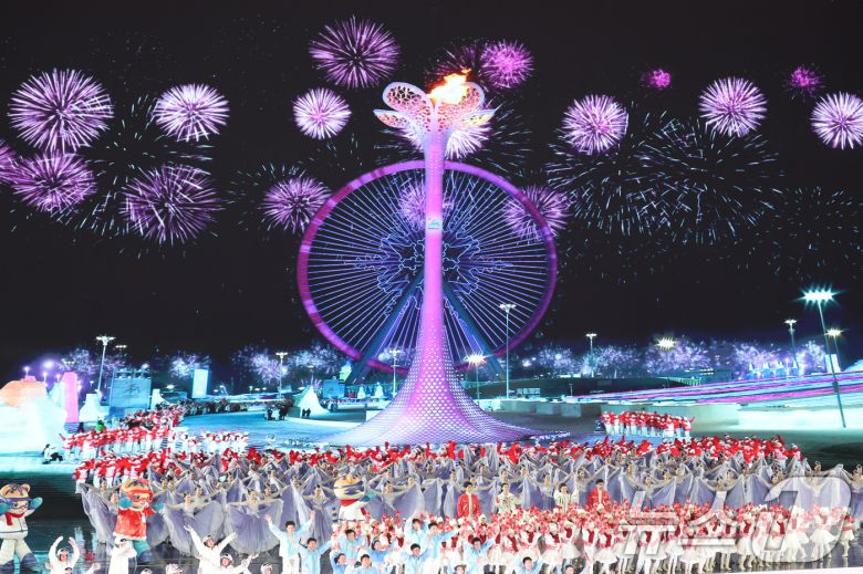 (서울=뉴스1) 이상철 기자 = 29년 만에 중국 하얼빈에 돌아온 동계 아시안게임 성화가 힘차게 불타올랐다.