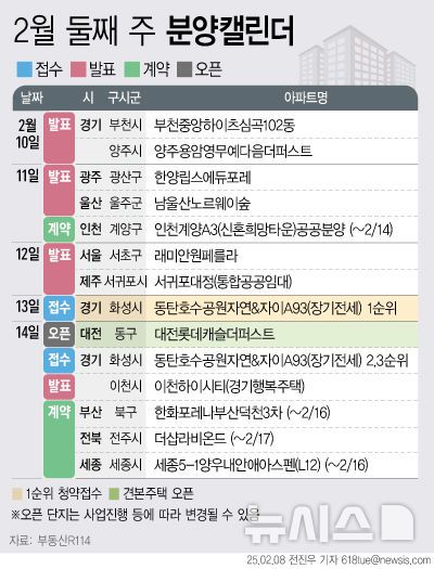 [서울=뉴시스]정진형 기자 = 부동산R114는 2월 둘째 주 전국 1개 단지 965가구가 분양을 시작한다고 8일 밝혔다. 설 연휴 전후 분양 물량이 3260가구에 그쳐 본격적인 봄 성수기에 들기까지 분양시장은 한산할 전망이다.