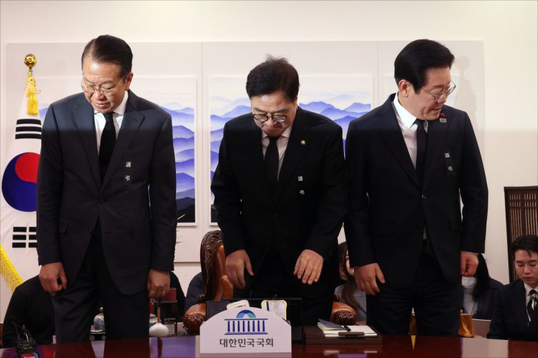 우원식 국회의장과 권영세 국민의힘 비상대책위원장, 이재명 더불어민주당 대표