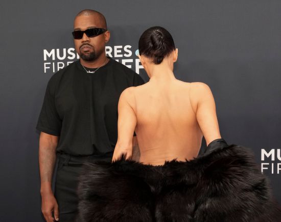 지난 2일 열린 그래미 어워즈 시상식에서 누드색 원피스 위에 입은 겉옷을 벗어 충격은 준 비앙카 센소리와 그의 남편 Ye(칸예 웨스트). 연합뉴스 |