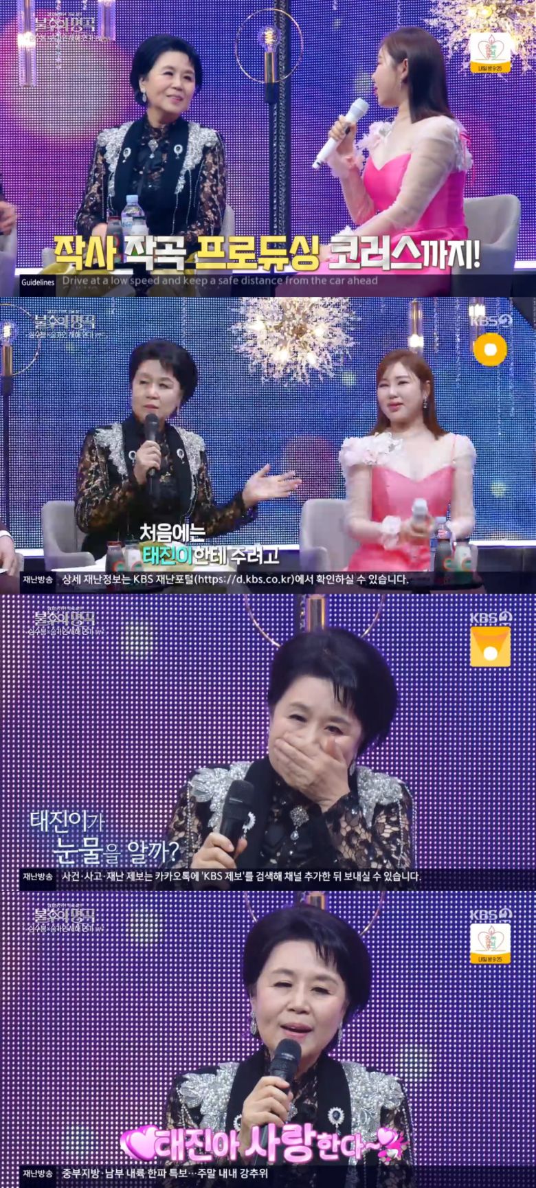 이날 송가인은 “저는 선생님의 1호 제자”라며 “4집 발매를 하는데 선생님께 꼭 곡을 받고 싶어서 무작정 찾아갔다. 곡 제목이 ‘눈물이 난다’인데 정규 타이틀이 됐다”라고 운을 뗐다.