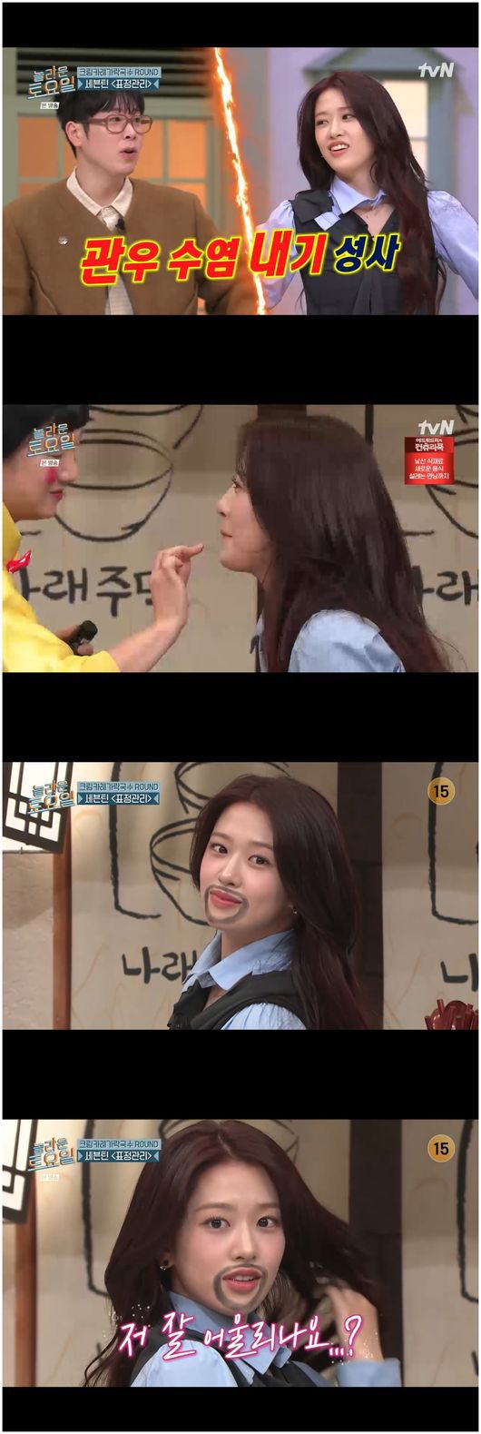 안유진은 “진짜 ‘멋대로’가 맞다”라며 정답 존에 다가와서 자신의 주장을 펼쳤다. 그러자 김동현은 “분장 걸어라”라고 말했고, 박나래는 “장비 눈썹이나 관우 수염 분장이 있다”라고 말했다. 안유진은 주저하는 듯 보였으나, 이내 수염 분장 내기에 응했다. 그러나 정답은 '멍 때려'였다.