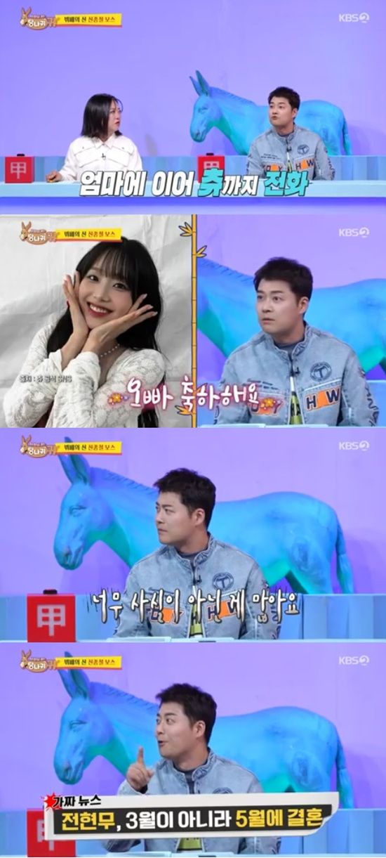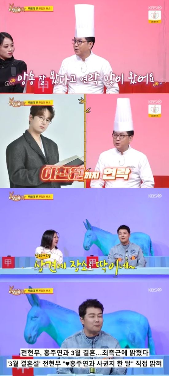 9일 방송된 KBS 2TV '사장님 귀는 당나귀 귀'에서는 전현무가 홍주연과의 결혼설에 어머니 연락이 왔었다고 밝히는 모습이 전파를 탔다.