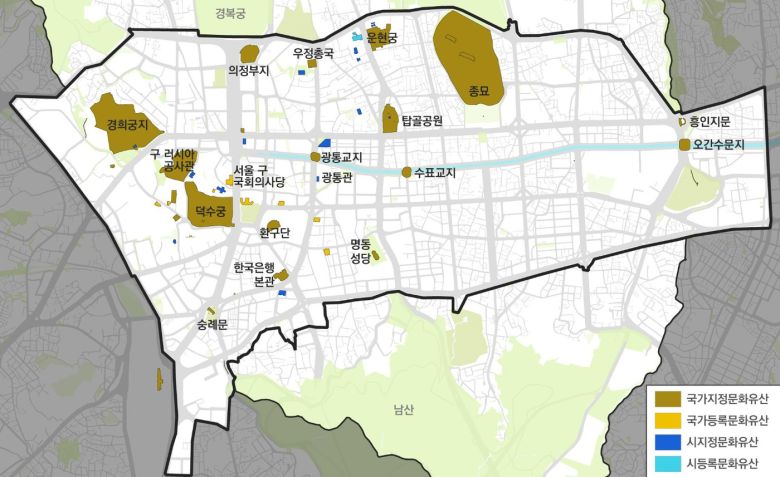 서울 도심부 문화유산 분포도.(서울시 제공) |