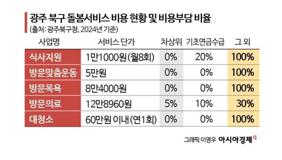 방문맞춤운동(1회 5만원), 방문목욕(1회 8만4000원), 집안 대청소(연1회·60만원 이내) 서비스도 있다. 차상위층과 기초연금 수급자에게는 무료지만, 경제적 여력이 있는 노인은 전액을 내야 한다. 이 팀장은 "공짜면 너도나도 신청하기 때문에 유료화를 해야 실수요자 어르신들이 얼마나 되는지 알 수 있다"며 "돌봄 서비스 예산과 공급량을 정확하게 예측하기 위해서라도 돈을 받아야 한다"고 했다.