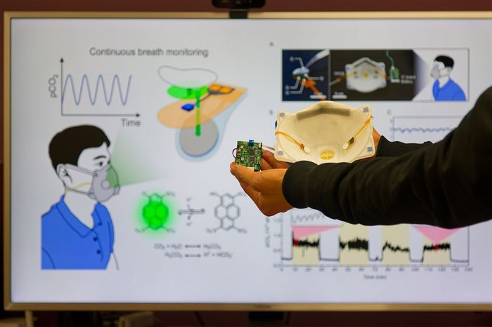 개발 센서는 0.12g으로 가볍고, 0.7㎜로 얇고, 유연하다. 마스크 내부에 부착해 CO₂ 농도를 정확히 측정한다. 또 실시간으로 들숨·날숨을 구별해 호흡수까지 모니터링 가능한 빠른 속도, 높은 해상도를 보였다.