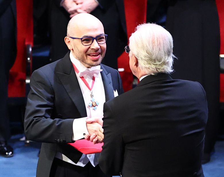 AI 기업 딥마인드 최고경영자(CEO) 데미스 허사비스(왼쪽)가 지난해 10월 10일 스웨덴 스톡홀름 콘서트홀에서 열린 노벨상 시상식에서 노벨화학상 메달과 증서를 받고 있다. |