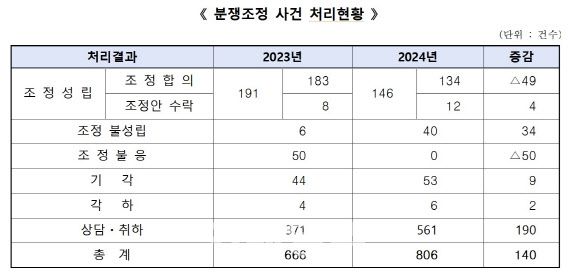 [이데일리 김범준 기자] 개인정보보호위원회의 ‘개인정보 분쟁조정’ 처리 건수가 2023년 666건에서 2024년 806건으로 약 21.0%포인트 증가한 것으로 나타났다.