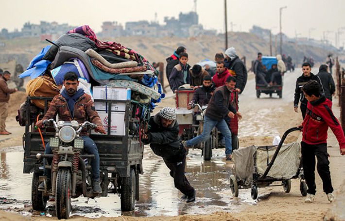 10일(현지시간) 가자지구 북부 고향으로 돌아가는 의 팔레스타인 주민들. 연합뉴스 |