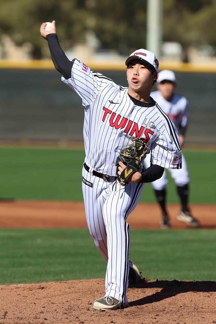LG 루키 추세현이 6일(한국시간) 미국 애리조나 스프링캠프에서 불펜피칭을 하고 있다. 사진 | LG 트윈스