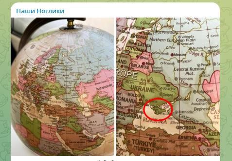 러시아가 2014년 강제 병합한 크림반도가 우크라이나 영토로 표기된 지구본. /사할린 지역 텔레그램 채널 '나시 노글리키' |