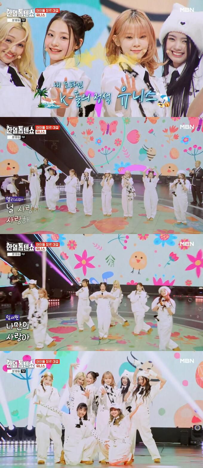 유니스가 출연한 MBN '한일톱텐쇼'는 한일 국가대표 현역 가수들이 출격해 트로트는 물론 K팝, J팝까지 한일 양국의 숨겨진 명곡을 선곡, 치열한 명곡 대결을 벌이는 '음악 예능 쇼'다.