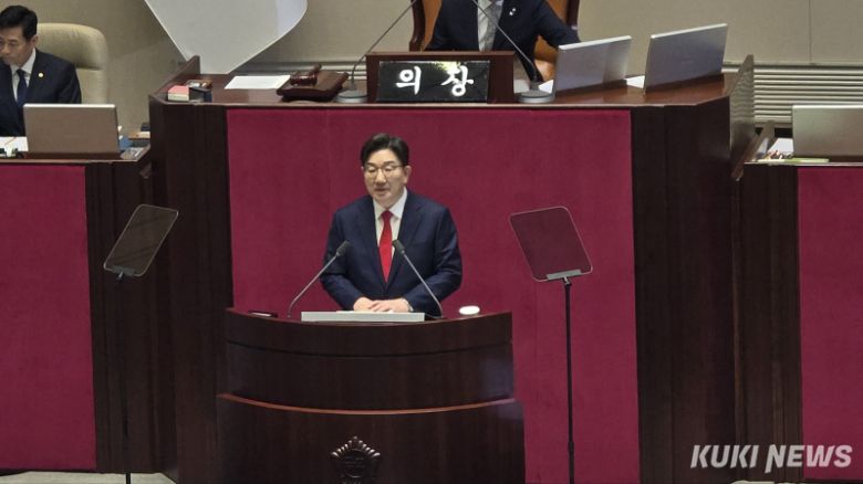 권성동 국민의힘 원내대표가 11일 국회 본회의장에서 교섭단체 대표연설을 하고 있다. 임현범 기자