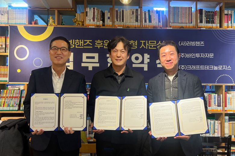 좌측부터 바인투자자문 김광주 대표, 러빙핸즈 박현홍 대표, 크래프트 테크놀로지스 이규환 CFO./크래프트 테크놀로지스 제공