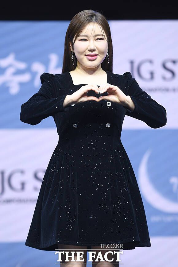 가수 송가인이 11일 오후 서울 강서구 스카이아트홀에서 정규 4집 '가인;달' 발매 기념 쇼케이스에 참석해 포즈를 취하고 있다. /장윤석 기자 |