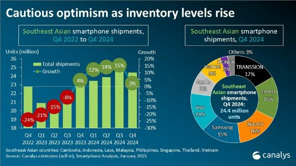 카날리스는 "동남아시아에서 스마트폰 제조업체 순위가 자주 재편되는 것은 더 이상 판매 규모만으로는 브랜드의 시장 지위를 측정할 수 없다는 것"이라며 "장기적으로 기기 판매를 넘어 소프트웨어와 서비스 등으로 수익원을 확장하는 업체가 강력한 입지를 확보할 것"이라고 내다봤다.
