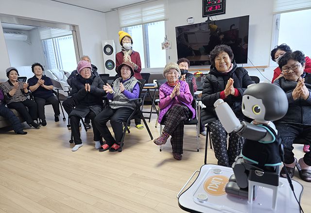 지난해 12월부터 3개월째 시범 운영 중인 돌봄 로봇은 경로당을 찾은 어르신들의 얼굴을 알아보고 인사하는 것은 물론 다양한 대화와 노래 및 율동을 제공하면서 경로당에 활기를 불어넣고 있다.