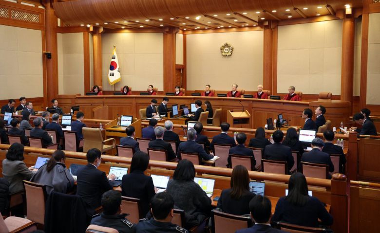 11일 서울 종로구 헌법재판소에서 열린 윤석열 대통령 탄핵심판 7차 변론기일에 헌법재판관들이 참석해 있다. 2025.2.11/뉴스1 |